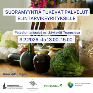 Tilaisuus tarjoaa mahdollisuuden tutustua erityisesti elintarvikealan pk-yrityksille ja tuottajille suunnattuihin suoramyynnin toteuttamista helpottaviin palveluihin. Ne voivat liittyä esimerkiksi
