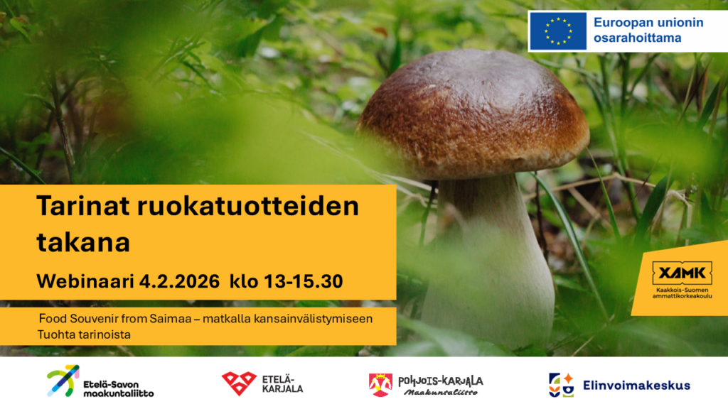 Webinaari on suunnattu Saimaan alueen ruoan ja matkailun parissa toimiville yrittäjille ja kehittäjille. Tapahtuman toteuttaa Kaakkois-Suomen ammattikorkeakoulun hallinnoimat Food Souvenir from Saimaa – matkalla kansainvälistymiseen ja Tuohta tarinoista -hankkeet.